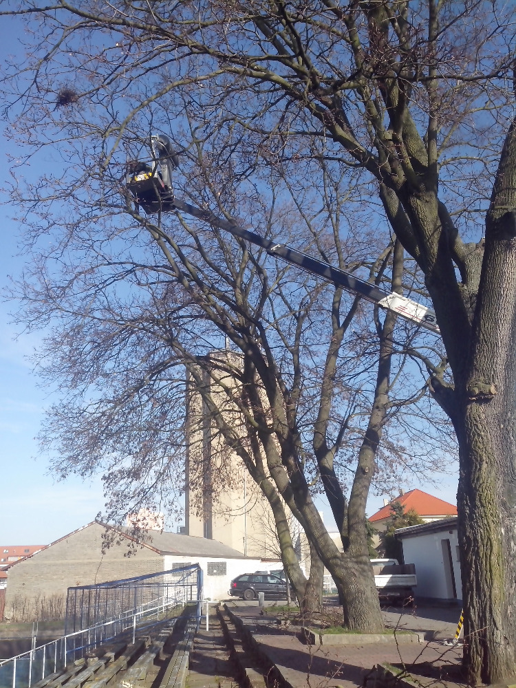 Ošetřovací práce na javorech u fotbalového hřiště ve Vlašimi