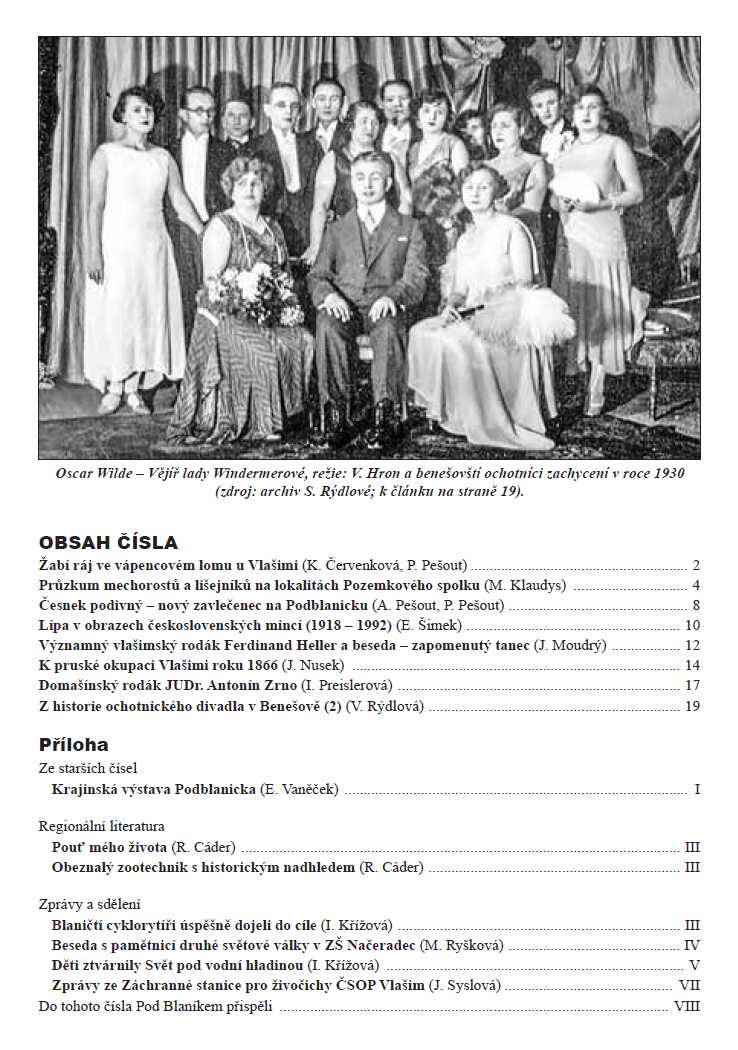 Předplatné časopisu a inzerci lze objednat na adrese Podblanické ekocentrum ČSOP, Pláteníkova 264, 258 01 Vlašim, tel.: 317 845 169, email: vlasim@csop.cz.
