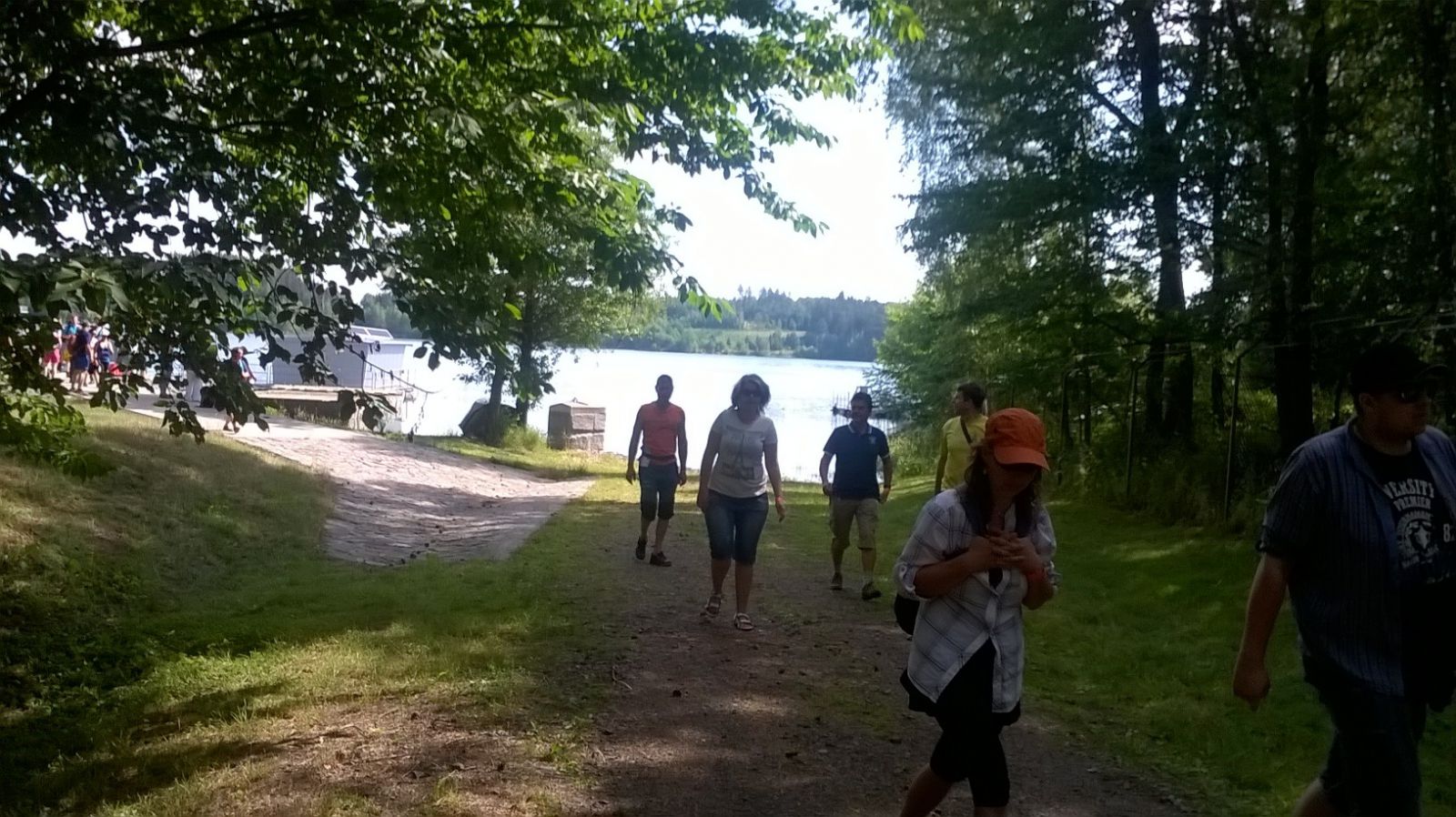 Jedna z 12 skupin účastníků exkurze za vodními zajímavostmi odchází od přístaviště lodí.
