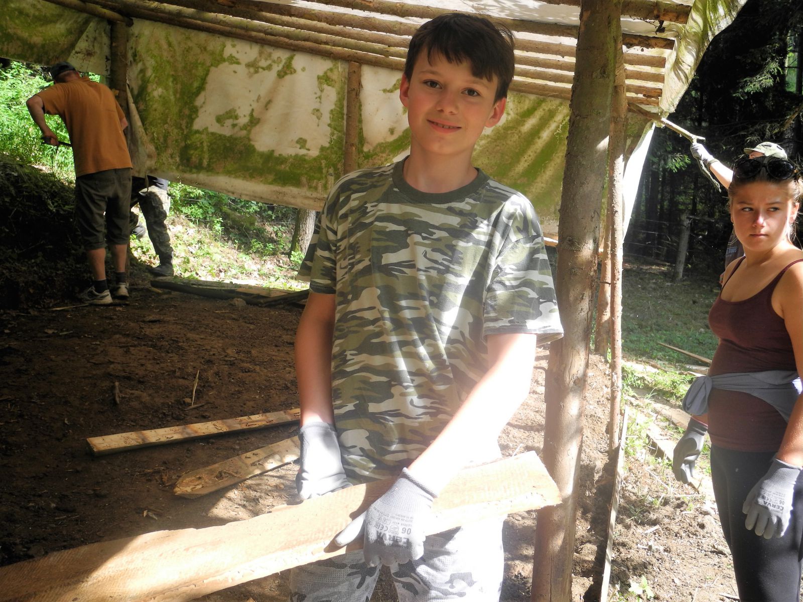 Každoročně se děti na letním táboře snaží být užiteční lokalitě, ve které táboří. V předchozích letech sázely stromy, čistily jalovcovou stráň od náletových dřevin a uklízely salaše pro ovce. V letošním roce přišla na řadu likvidace starého přístřešku pro ovce. „Byla to docela dřina, protože přístřešek jsme museli rozebrat na kusy a odnosit do tábora. Největším zážitkem byl pád přístřešku při stahování plachty ze střechy. Ale děti pracovaly se zapálením a za chvíli bylo hotovo.“ Uvádí Josef Husník, který vykonával na táboře funkci technicko-hospodářského pracovníka.