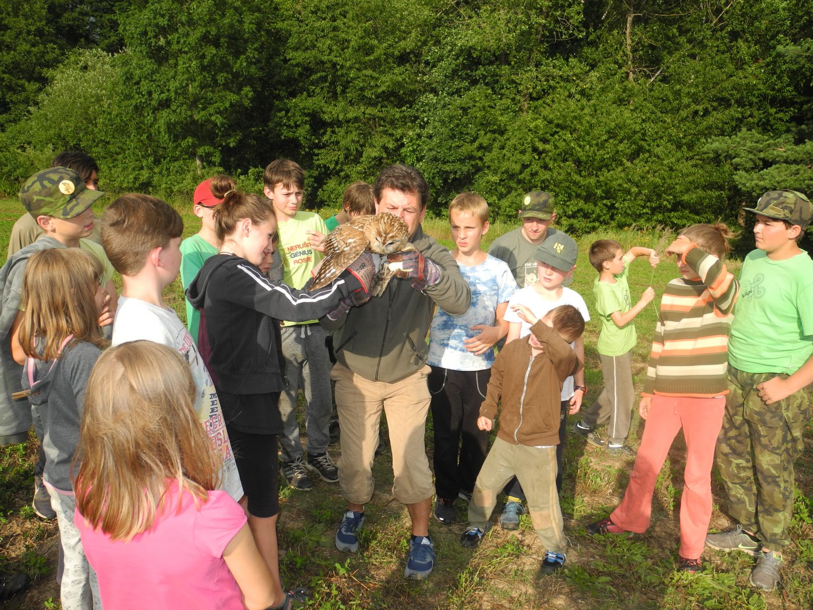 V průběhu tábora nás třikrát navštívili pracovníci Záchranné stanice pro živočichy ČSOP Vlašim a přivezli s sebou uzdravená zvířata připravená k vypuštění zpět na svobodu. Děti vypouštěly uzdravené káně lesní, drozdy a v závěru tábora puštíka obecného.