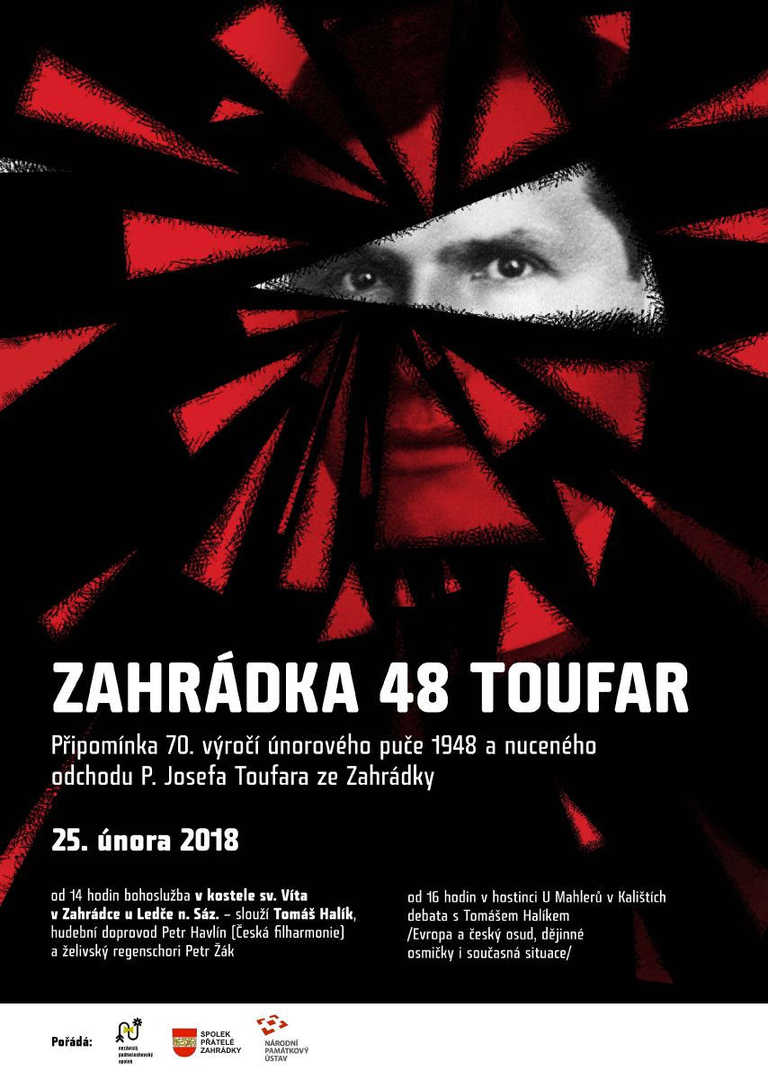 Kostel svatého Víta je jedinou stavbou, která se zachovala z městečka s 200 domů zbouraného v 70. letech minulého století kvůli stavbě vodárenské nádrže Švihov na řece Želivce. Pro pátera Toufara byla farnost v Zahrádce prvním působištěm, sloužil tam od roku 1940 do roku 1948. U místních si velice rychle získal sympatie a stal se nesmírně oblíbeným. Po komunistickém převratu byl z politických důvodů přeložen do Číhoště, i když proti tomu ve velkém místní protestovali. Kněz zemřel 25. února 1950 po mučení příslušníky StB, kteří se ho snažili donutit k přiznání, že v číhošťském kostele 11. prosince 1949 zinscenoval takzvaný zázračný pohyb kříže na oltáři.
