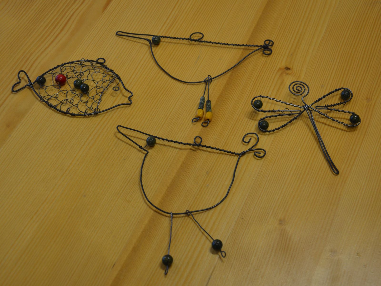 V průběhu workshopu si návštěvníci mohli prohlédnout jak neopracovaný hadec, tak vybroušené korálky, kterými pak zdobili drátkované ozdoby. Vyráběli se tradiční rybky, vážky, ale i ptáčci a vznikly také dva unikátní květy kuřičky a několik párů náušnic.