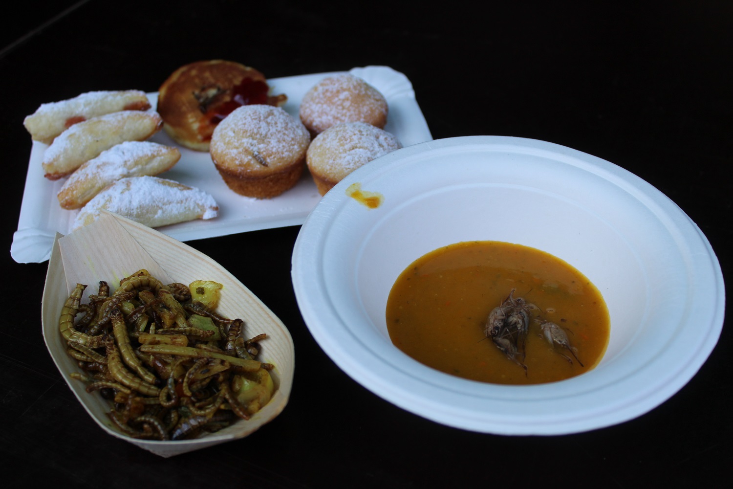 Hmyzí jídla mohli návštěvníci ochutnávat po celou dobu akce. V nabídce byla hmyzí dýňovka, lívanečky a další ochutnávky převážně na asijský způsob.