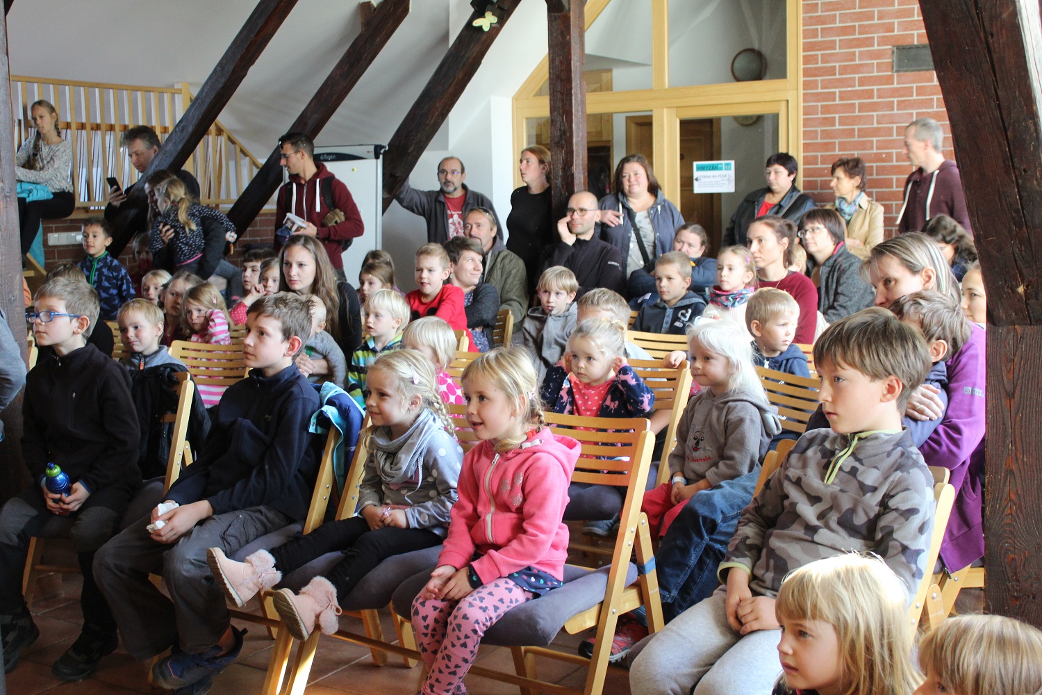 Dětské obecenstvo na představení loutkového divadla Vysmáto